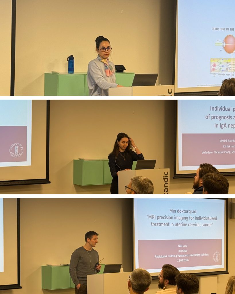 K1‑dagen ble gjennomført med et sterkt faglig program som viste bredden i instituttets virksomhet. PhD‑sesjonen bød på solide presentasjoner som illustrerte spennvidden i forskningen ved K1. I undervisningsdelen fikk vi vite mer om Vestlandslegen fra både et makro- og et mikroperspektiv, og foredraget om menneskelig og kunstig intelligens var et fint avbrekk som ga tid til refleksjon. I innovasjonsbolken fikk et godt innblikk i nye forsknings- og utviklingsmiljøer ved instituttet, før dagen ble avrundet med viktige perspektiver på samarbeid mellom UiB og HUS. Middagen som fulgte ble også meget hyggelig. Det var en anledning til å snakke sammen i et roligere tempo og møte «nye» kolleger på tvers av fagmiljøene, uten program og tidsrammer. Tusen takk til alle involverte og inverterte som bidro til at dagen ble så bra som vi hadde håpet.