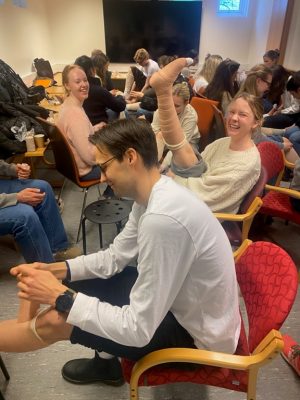 K1‑dagen ble gjennomført med et sterkt faglig program som viste bredden i instituttets virksomhet. PhD‑sesjonen bød på solide presentasjoner som illustrerte spennvidden i forskningen ved K1. I undervisningsdelen fikk vi vite mer om Vestlandslegen fra både et makro- og et mikroperspektiv, og foredraget om menneskelig og kunstig intelligens var et fint avbrekk som ga tid til refleksjon. I innovasjonsbolken fikk et godt innblikk i nye forsknings- og utviklingsmiljøer ved instituttet, før dagen ble avrundet med viktige perspektiver på samarbeid mellom UiB og HUS. Middagen som fulgte ble også meget hyggelig. Det var en anledning til å snakke sammen i et roligere tempo og møte «nye» kolleger på tvers av fagmiljøene, uten program og tidsrammer. Tusen takk til alle involverte og inverterte som bidro til at dagen ble så bra som vi hadde håpet.